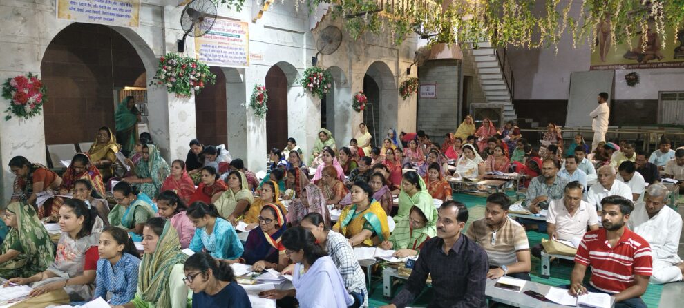 रामगंजमंडी। नगर में मूक माटी अर्थज्ञान एवं शिक्षण शिविर लगाया गया है। यह 17 मई से चल रहा है। जिसका समापन 26 मई को होगा। शिविर में अध्ययन करने के लिए बच्चों के साथ हर वर्ग उत्साह से भाग ले रहा है। इस शिविर का पूरा नगर के प्रशांत जैन आचार्य एवं आकाश जैन आचार्य कर रहे हैं। शिविर संयोजक श्री आकाश जैन आचार्य ने बताया कि 17 मई से शुरू हुए शिविर में उमंग उत्साह देखने को मिल रहा है। शिविर में 300 से अधिक शिविरार्थी भाग ले रहे हैं। इस शिविर में श्रमण संस्कृति संस्थान सांगानेर से आए विनोद जैन, हेमंत जैन, मनोज जैन आदि सभी को धार्मिक अध्ययन करा रहे हैं। साथ ही विनोद जैन आचार्य द्वारा प्रतिदिन आचार्य श्री विद्यासागर महाराज की अनुपम जीवंत कृति मूक माटी महाकाव्य का अध्ययन कराया जा रहा है। प्रशांत जैन आचार्य ने बताया कि बच्चों को भी धार्मिक अध्ययन कराया जा रहा है। जिसमें बच्चे बढ़-चढ़कर भाग ले रहे हैं। छोटे-छोटे बच्चों को आर्ट एवं क्रॉफ्ट सिखाया जा रहा है। जिसका प्रशिक्षण रक्षिता जैन लुहाड़िया एवं स्वाति जैन बागड़िया दे रही हैं। प्रशांत जैन ने बताया कि बच्चों को धर्म अध्ययन के साथ खेलकूद भी कराया जा रहा है। सोमवार को म्यूजिकल चेयर रेस का आयोजन किया गया।