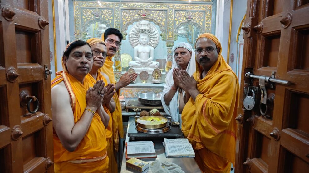 रायपुर । श्री आदिनाथ दिगंबर जैन बड़ा मंदिर पंचायत ट्रस्ट मालवीय रोड रायपुर में गुरुवार को गुरु पुष्प नक्षत्र के पुण्य सुअवसर पर अखंड ज्योति स्थापना की गई । आचार्य भगवन श्री विद्यासागर जी महाराज ने नवीन जिनालय के लिए दिशा निर्देश देते हुए अखंड ज्योति प्रज्वलित करने हेतु कहा था, इस पर अमल करते हुए अखंड ज्योति की स्थापना का कार्यक्रम मूल नायक 1008 श्री आदिनाथ भगवान की वेदी के समक्ष रखा गया । सुबह 7.45 मिनट पर महामंत्र का जाप,मंगलाष्टक वाचन ,ज्योति पात्र शुद्धि सुबह 8.15 मिनट पर अखंड ज्योति स्थापना की गई । ट्रस्ट एवं कार्यकारणी कमेटी के सभी सदस्यों ने उपस्थित होकर अखंड ज्योत प्रजवल्लित की, यह अखंड ज्योत नवीन जिनालय का कार्य जब तक प्रारंभ होकर पूर्ण नही होता तब तक प्रजवल्लित रहेगी, साथ ही नवीन जिनालय का निर्माण कार्य जल्द से जल्द प्रारंभ करने पूर्ण करने का संकल्प भी सभी उपस्थित सदस्यगण ने लिया ।