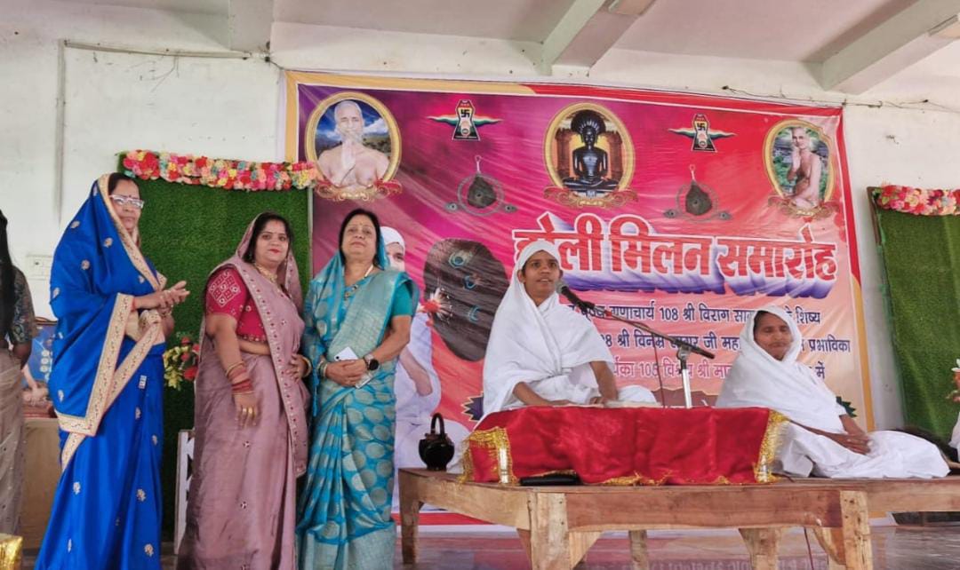 जैन बगीची क्षेत्र में अबीर व गुलाल की बौछार के बीच जैन समाज की बालिकाओं द्वारा मिलन समारोह का आयोजन सामाजिक स्तर पर किया गया ।आयोजन में जैन साध्वी विश्रेय श्री माताजी विशेष रूप से मौजूद रही, माताजी ने कहा कि संतों के सानिध्य में जो भी कार्यक्रम आयोजित होता है उससे लोग प्रेरणा लेते हैं ।पढ़िए अजय जैन की रिपोर्ट…….