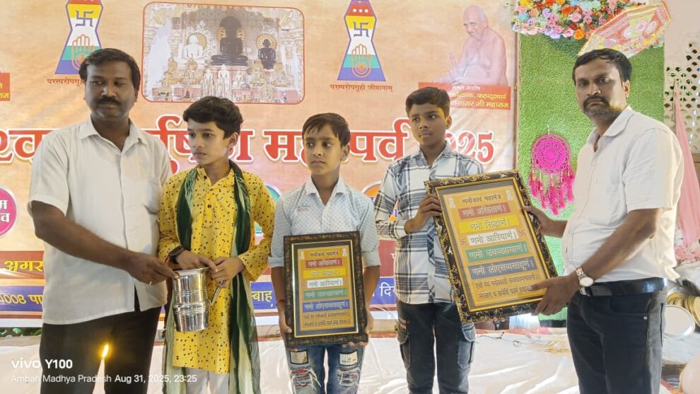 नन्हें-मुन्नों की प्रस्तुतियों ने समाज को आनंदित किया और धर्म व संस्कृति का संदेश दिया। आज मंगलवार को पर्यूषण पर्व की श्रृंखला में सुगंध दशमी मनाई जाएगी। श्रद्धालु हिंसा, झूठ, चोरी, कुशील, परिग्रह आदि पांच पापों का त्याग करेंगे और व्रत पालन के साथ मंदिरों में पूजा, स्वाध्याय और धर्मचिंतन करेंगे। अंबाह के परेड़ जैन मंदिर में इस अवसर पर विशेष पूजा, प्रवचन और धार्मिक अनुष्ठान आयोजित होंगे।