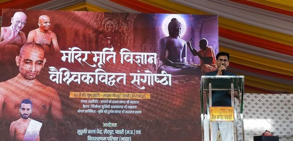 सैदपुर (पठारी)। विदिशा जिले के पठारी क्षेत्र अंतर्गत सैदपुर गांव में 3 से 5 जून तक त्रिदिवसीय राष्ट्रीय मूर्ति कला संगोष्ठी हुई। कार्यक्रम का शुभारंभ आचार्य श्री विद्यासागर जी के शिष्य मुनि श्री दुर्लभ सागर जी के सानिध्य में दीप प्रज्वलन एवं मंगलाचरण के साथ हुआ। संगोष्ठी के संयोजक और शास्त्री परिषद के महामंत्री ब्रह्मचारी जयकुमार निशांत ने बताया कि संगोष्ठी का उद्देश्य प्राचीन भारतीय मूर्तिकला परंपरा को समर्पित चिंतन, विमर्श और आधुनिक संदर्भों में उसकी पुनः परिभाषा रहा। आयोजन आचार्य श्री समयसागर जी के आशीर्वाद, मुनि श्री अभयसागर जी महाराज की प्रेरणा और मुनि श्री दुर्लभ सागर जी के सानिध्य में हुआ। प्राचीन जैन मंदिर एवं मूर्तिकला परंपरा को पुनर्जीवित करने के उद्देश्य से मंदिर एवं मूर्ति विज्ञान पर इतिहास की पहली वैश्विक कार्यशाला का भव्य आयोजन सैदपुर (पठारी) में किया गया। कार्यशाला में जैन आगम, मूर्ति निर्माण, मूर्ति विज्ञान की वैज्ञानिक विधियां और प्रतिष्ठा के शुभ मुहूर्त पर विस्तार से शोधपूर्ण प्रस्तुतियां दी गईं।