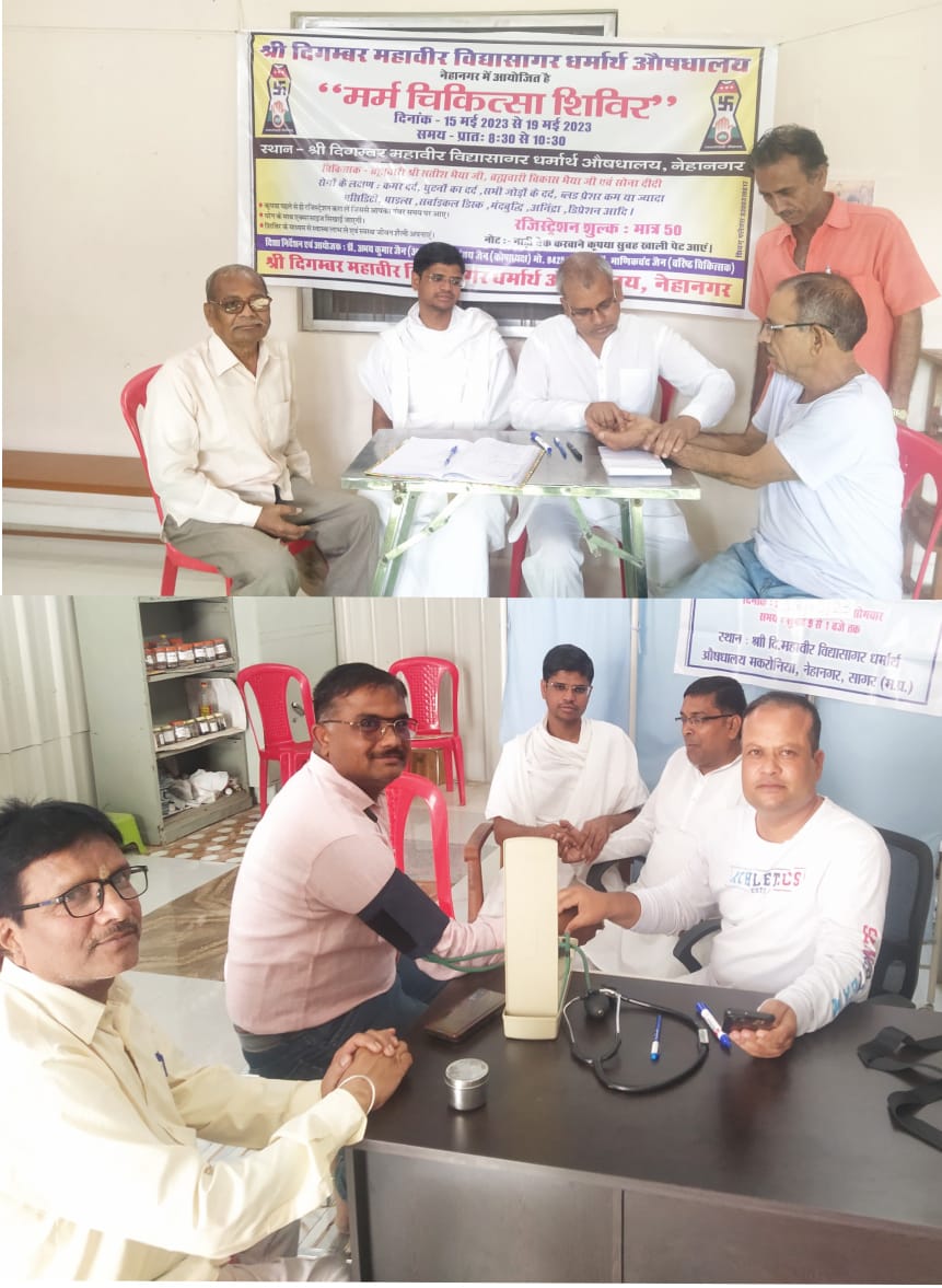सागर। श्री दिगंबर जैन महावीर विद्यासागर धर्मार्थ औषधालय नेहानगर के तत्वावधान में आयोजित पांच दिवसीय मर्म चिकित्सा योग शिविर ब्रह्मचारी सतीश भैया ब्रह्मचारी विकास भैया के निर्देशन में संपन्न हुआ। सदर में 250 से ज्यादा लोगों ने अपनी जांच करा कर शिविर को सफल बनाया।
