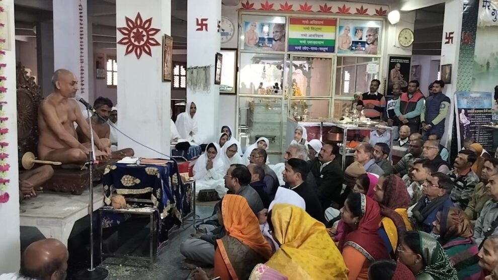 बुंदेलखंड के प्रथमाचार्य गणाचार्य श्री विरागसागर जी महाराज के परम प्रभावक शिष्य आचार्य श्री विमर्शसागर जी महाराज ससंघ का मंगल पद विहार अतिशय क्षेत्र तिजारा की ओर चल रहा है। पद विहार के दौरान आचार्यश्री आज अपने 27 पिच्छिकाओं सहित ज्ञानतीर्थ पधारे। यहां उन्होंने धर्मसभा में श्रावकों को संबोधित किया। पढ़िए मनोज नायक की रिपोर्ट…