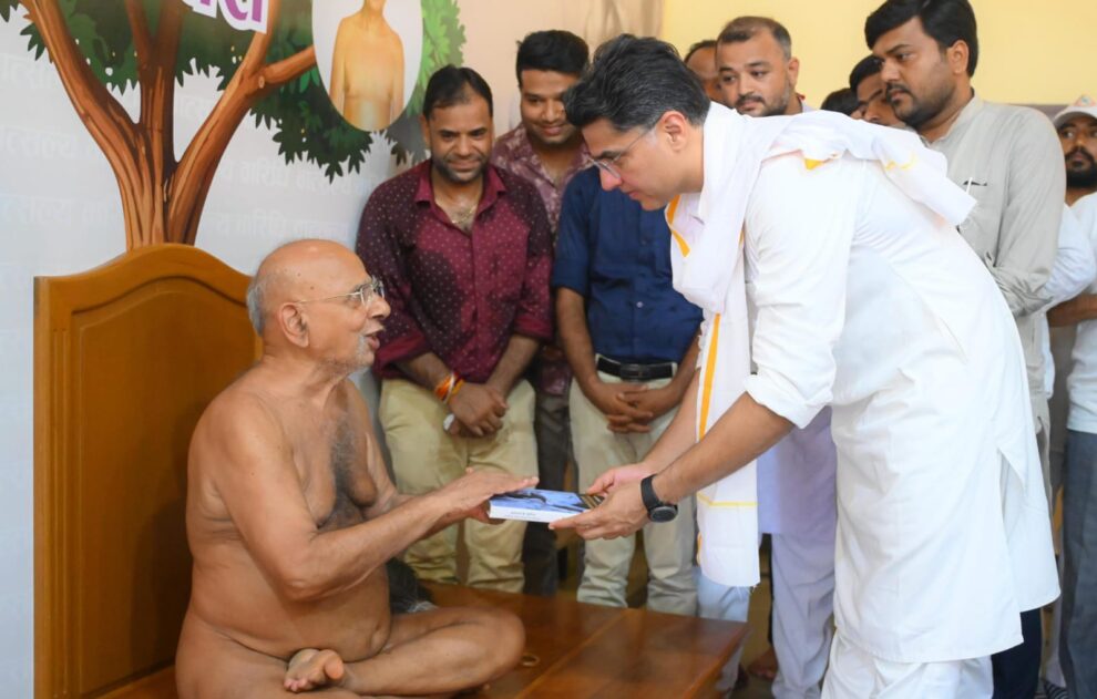गुरुवर दोपहर को टोंक विधायक पूर्व उप मुख्यमंत्री सचिन पायलट जैन नसिया आमीररगंज पधारे। वहां आदिनाथ जिनालय में श्रीफल भेंटकर दर्शन किए। आचार्य श्री को श्रीफल भेंटकर अनेक विषयों पर मार्गदर्शन प्राप्त कर आशीर्वाद लिया एवं आचार्य श्री ससंघ की दिनचर्या से बहुत प्रभावित हुए। समाज के लोगों ने उनको 24 घंटे में एक बार आहार व जल ग्रहण करने पर वो भी विधि पूर्वक ओर अनेक चर्या के बारे में बताया। इससे पायलट बहुत प्रभावित हुए। आचार्य श्री ने उनको पुस्तक आचार्य शांतिसागर जी महाराज के जीवनी की प्रदान की।