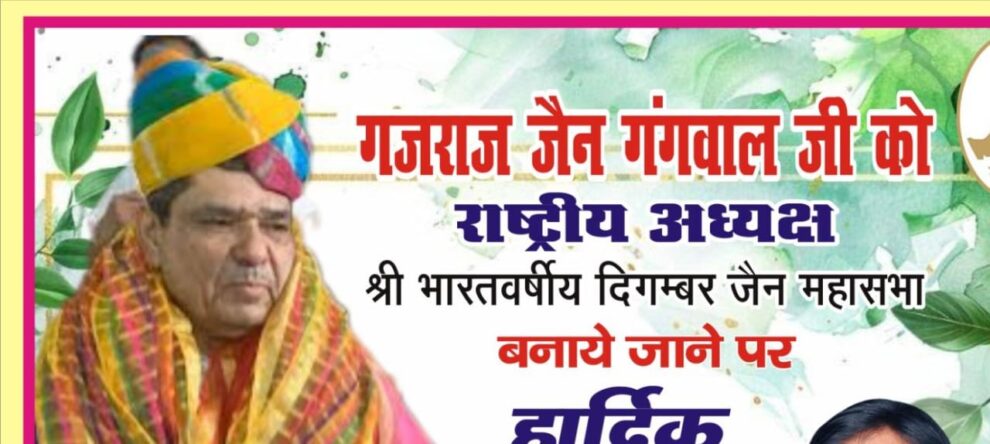 भारतवर्षीय दिगंबर जैन महासभा के राष्ट्रीय अध्यक्ष पद पर श्री गजराज जी गंगवाल का सर्वसम्मति से चयन हुआ। समाजजनों ने शुभकामनाएं देते हुए कहा कि नए नेतृत्व से संगठन के कार्यों में तेजी आएगी। पढ़िए राजेश जैन दद्दू की रिपोर्ट…