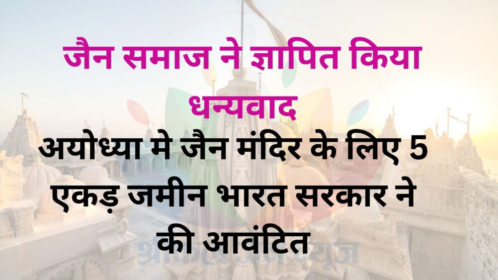 जैन समाज ने ज्ञापित किया धन्यवाद: अयोध्या मे जैन मंदिर के लिए 5 एकड़ जमीन भारत सरकार ने की आवंटित