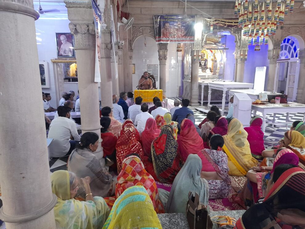 आगरा। संस्कार प्रणेता आचार्य श्री सौरभसागर जी महाराज ससंघ का मोती कटरा स्थित श्री संभवनाथ दिगंबर जैन बड़ा मंदिर से मंगल विहार करते हुए श्री शीतलनाथ दिगंबर जैन मंदिर सेठ बिहारीलाल जी की धर्मशाला, गुदड़ी मसूर खां की पावन धरा पर 16 मई को प्रात:काल की बेला में मंगल प्रवेश हुआ। आचार्य श्री ससंघ प्रथम बार भव्य शोभायात्रा के साथ पहुंचे। इस दौरान बड़ी संख्या में स्थानीय गुरुभक्तों ने आचार्यश्री का पाद प्रक्षालन एवं मंगल आरती कर भव्य अगवानी की। इस अवसर पर गुदड़ी मसूर खां सकल जैन समाज ने आचार्यश्री सौरभ सागर जी महाराज को श्रीफल भेंटकर मंगल आशीर्वाद प्राप्त किया।