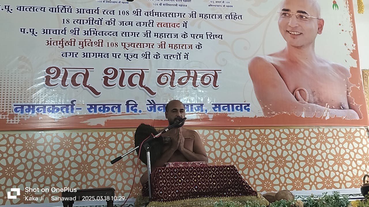 सनावद। निमाड़ में जन्में अंतर्मुखी पूज्य मुनिश्री पूज्य सागरजी का भव्य मंगल प्रवेश आज 18 मार्च मंगलवार को प्रातः 8 बजे नगर में ओंकारेश्वर रोड, रेल्वे गेट से हुआ।