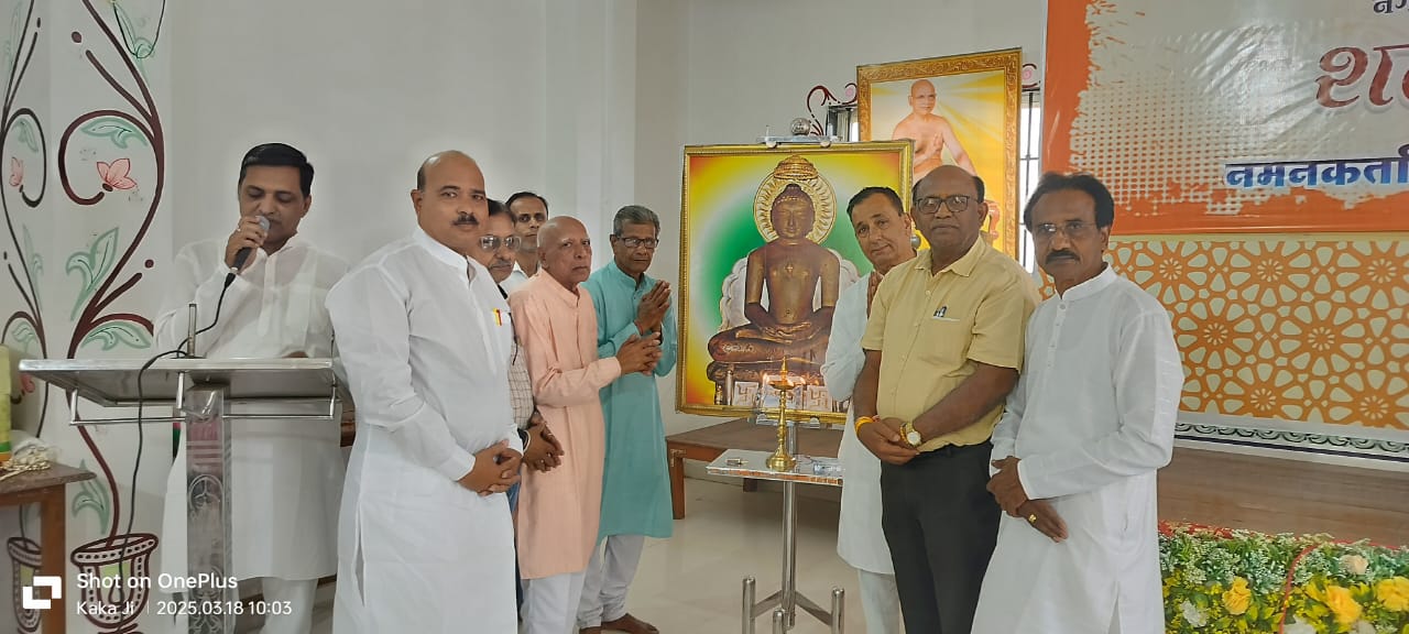 जहां सभा का शुभारंभ भगवान महावीर स्वामी के चित्र के समकक्ष सोमचंदजी जैन पिपलगोन, भारतेश्वर जैन पीपलगोन, दीपक जैन पीपलगोन, पवन कुमार जैन, प्रमोद कुमार जैन, बड़वाह एवं कमलेश कुमार डोंगरे एवं मुकेश जैन सनावद के द्वारा दीप प्रज्वलित कर किया गया।