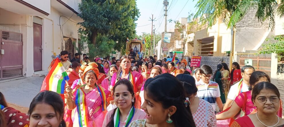 आगरा। महावीर जन्म कल्याणक महोत्सव के उपलक्ष्य में महावीर दिगंबर जैन मंदिर कला कुंज मारुति स्टेट से भव्य प्रभात फेरी बड़े हर्ष एवं उल्लास के साथ निकाली गई। प्रभात फेरी का शुभारंभ बैंड बाजों के साथ भक्तिमय संगीत के साथ की गई महावीर भगवान की आरती से हुआ। प्रभात फेरी शुरू होने से पहले मंदिर में मूलनायक महावीर भगवान जी का अभिषेक एवं शांति धारा हुई। प्रभात फेरी में मुख्य अतिथि के रूप में अध्यक्ष शिवाजी मंडल डॉक्टर प्रदीप उतप्रेती एवं होम्योपैथी चिकित्सक आर.बी.सिंह की गरिमामई उपस्थिति रही। प्रभात फेरी में बच्चे, बुजुर्ग एवं महिलाओं ने बढ़ चढ़कर हिस्सा लिया। बच्चे एवं युवा महावीर भगवान के संदेशों का जोर जोर से नारा लगा कर आगे बढ़ रहे थे। सभी के हाथों में जैन धर्म के झंडे एवं महावीर भगवान के संदेश लिखे होल्डिंग थे। महिलाओं ने भजनों पर मनमोहक नृत्य किए, जगह-जगह पर भक्तजनों का गर्मजोशी से स्वागत किया गया।