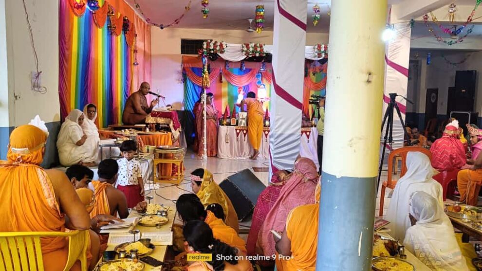 मुनि श्री पुण्य सागर जी द्वारा तारादेवी उकावत तथा सुनीता देवी छाबड़ा को आगामी 2 जुलाई को जैनेश्वरी दीक्षा दी जाएगी। बाल ब्रह्मचारिणी वीणा दीदी बिगुल अनुसार मुनि श्री ने बताया कि विधान में अरिहंत, सिद्ध, आचार्य, उपाध्याय, साधु परमेष्ठि को अर्घ्य समर्पित किए गए। सिद्ध बनने के पूर्व, अरिहंत साधु परमेष्ठि पुरुषार्थ कर बन सकते हैं। वर्तमान में विदेह क्षेत्र से मोक्ष जा सकते हैं।