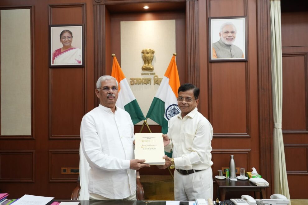 पटना (राजेश जैन दद्दू)। बिहार के राज्यपाल राजेंद्र अरलेकर को सदी के महान धरती के देवता शताब्दी देशना आचार्य भगवन विशुद्ध सागर जी महाराज द्वारा कृत महान ग्रंथ सत्यार्थ बोध अखिलेश कुमार जैन (जज , पटना) द्वारा भेंट किया गया। ग्रंथ पाकर राज्यपाल द्वारा आचार्य श्री को नमोस्तु अर्पण किया।
