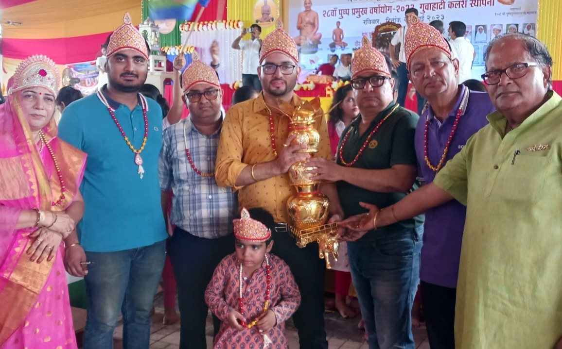 इससे पूर्व श्री 1008 सिद्धचक्र महामंडल विधान के अंतिम दिन विश्व शांति महायज्ञ का आयोजन किया गया। इस अवसर पर प्रात: आचार्य श्री(ससंघ) के निर्देशन में श्रीजी की पूजा अर्चना, अभिषेक व शांतिधारा करने के पश्चात विधान के प्रमुख पात्रों द्वारा विधान के 1024 अर्घ्य चढ़ाए गए। तत्पश्चात् विभिन्न कार्यक्रमों को संपादित करते हुए सौभाग्यशाली परिवारों द्वारा कलश स्थापित किए गए, जिसमें मुख्य मंगल कलश पुण्यार्जक पदमचंद, संजय कुमार पाटनी परिवार(गुवाहाटी) एवं मिश्रीलाल, सुरेश कुमार बाकलीवाल परिवार( गुवाहाटी), शांति सागर कलश पुण्यार्जक कैलाशचंद प्रकाश चंद काला परिवार (रंगिया), बिमल सागर कलश पुण्यार्जक धन्नालाल, विरेंद्र कुमार पाटनी परिवार(ग्वालपाड़ा), पुष्पदंत सागर कलश पुण्यार्जक ओमप्रकाश-प्रभा देवी सेठी परिवार (गुवाहाटी), प्रमुख सागर कलश पुण्यार्जक झूमरमल पन्नालाल गंगवाल परिवार (गुवाहाटी), नेमीनाथ भगवान कलश पुण्यार्जक नागरमल, नरेन्द्र कुमार गंगवाल परिवार(गुवाहाटी), अखंड दीप पुण्यार्जक मिश्रीलाल,महेश कुमार काला परिवार (इम्फाल) आदि रहे। यह जानकारी समाज के प्रचार प्रसार विभाग के मुख्य संयोजक ओमप्रकाश सेठी एवं सह संयोजक सुनील कुमार सेठी ने दी।