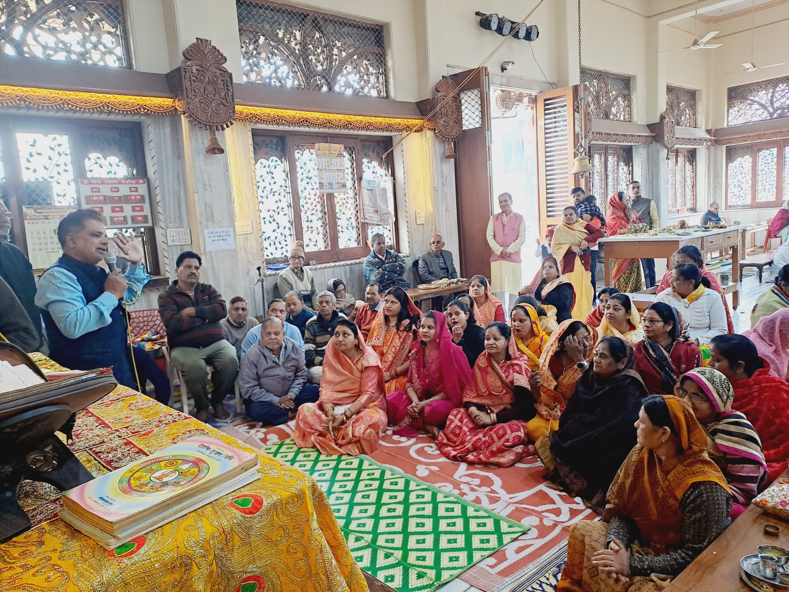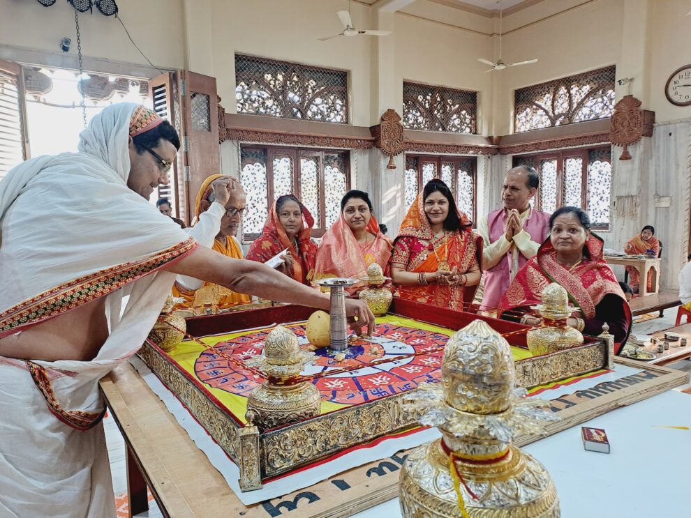 पूजन में मौजूद सभी भक्तों ने संगीतकार के मधुर भजनों पर नृत्य किया। कार्यक्रम के मध्य में भक्तों को आचार्य श्री ज्ञेयसागर जी महाराज की मंगल वाणी श्रवण करने का अवसर प्राप्त हुआ। इस दौरान शालीमार एनक्लेव सकल जैन समाज ने आचार्यश्री के समक्ष श्रीफल भेंटकर मंगल आशीर्वाद प्राप्त किया। इसके बाद सौभाग्यशाली परिवारों ने आचार्यसंघ के कुशल निर्देशन में ज्ञान निकुंज संतभवन का फीता खोलकर लोकार्पण किया।