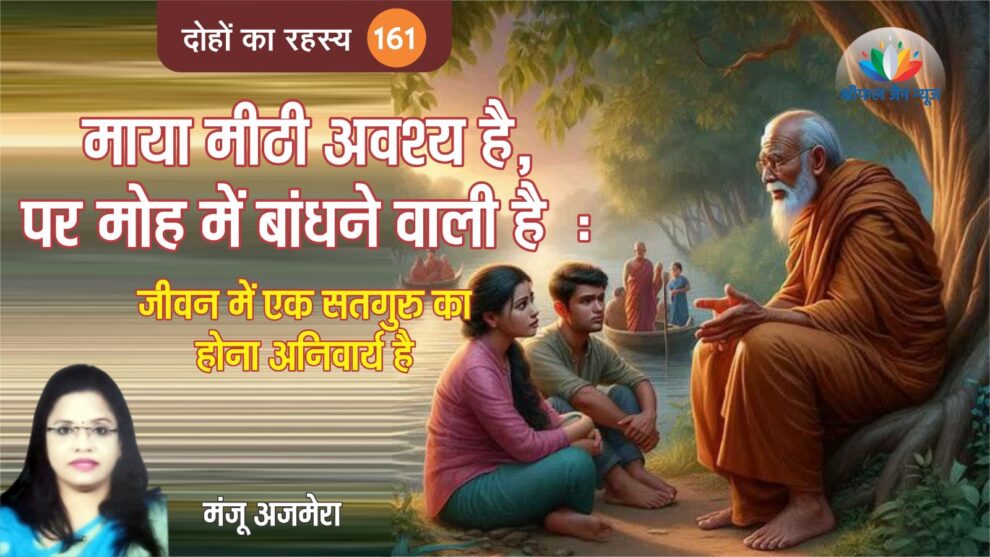 संत कबीर इस दोहे में माया — यानी भौतिक संसार के मोह — की मोहक किंतु छलपूर्ण प्रकृति और सतगुरु की अपरिहार्य भूमिका को उजागर करते हैं।