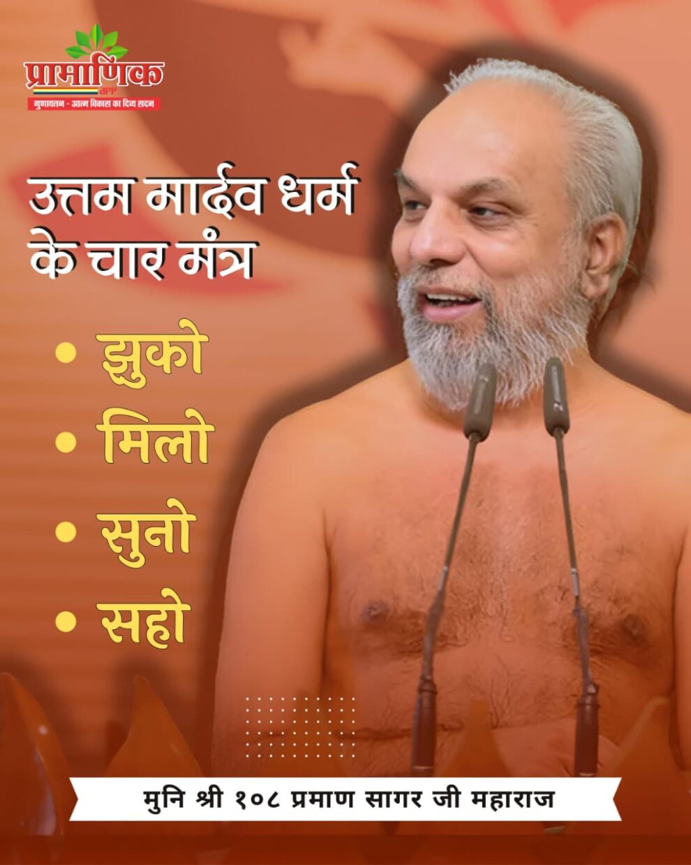 मुनि श्री ने कहा कि जो झुकेगा वह दूसरों को भी झुका पाएगा। अहंकार में डूबा मनूष्य न तो खुद का भला कर पाता है न दूसरे का। जैसे पेड़ जितना फलदार होता है उसकी शाखाएँ उतनी झुकी होती है। मुनि श्री ने कहा कि अकड़ मुर्दे की पहचान हुआ करती है। झुकता वही है जिसमें जान है। अपने जीवन को जीवंत बनाना चाहते हो तो मार्दव धर्म को अपनाओ और झुकना सीखो। मुनि श्री ने कहा कि अपना अपना इगो छोड़ो। उन्होंने कहा कि पति-पत्नी में अनबन हो गई। गुस्से में पत्नी ने कह दिया मैं अपने मायके जा रही हूं। पति अपने काम पर निकल गया और पत्नी को समझ आई और मायके न जाकर अपने घर वापस आ गई। सांयकाल पति भी घर आ गया दोनों आमने-सामने है लेकिन, दोनों बोलने को तैयार नहीं। उनका तीन साल का बच्चा था। उसने मंदिर में गुरु के मुख से एक गीत सुना था वह उसे याद था उसके बोल थे ‘रुक मत प्राणी झुकजा, जीवन सुखी बन जाएगा’ वह बार-बार कभी मां की तरफ तो पिता की तरफ मुख करके सुनाता रहा। दोनों को हंसी आई और दोनों एक साथ बोल पड़े गलती हमारी थी और क्षमा मांगी। पति ने कहा मैं तुम्हें लेने तुम्हारे घर गया था तो मालूम पड़ा कि तुम तो वहां गई ही नहीं तो पत्नी ने कहा कि आपके जाने के बाद मुझे अपनी गलती का अहसास हुआ और मैं कहीं नहीं गई। पतिदेव आप मुझे क्षमा करें। मुनि श्री ने कहा कि दोनों एक-दूसरे के सामने झुक गये तो परिवार टिक गया। यदि एक-दूसरे के सामने झुकने को तैयार नहीं होते मामला गड़बड़ा जाता। मुनि श्री ने कहा कि हर व्यक्ति में कुछ न कुछ गुण अवश्य होते हैं। उनकी अच्छाइयों को देखो। बड़प्पन तभी है जब दूसरों को मान देना शुरु करो तथा कथित ऐसे बड़े आदमी मत बनो कि तुम्हारे घर कोई गरीब आदमी न आए। उन्होंने कहा कि बड़ा आदमी वह नहीं कि उसके बड़े ठाट हों। बड़ा आदमी तो वह है जिसके पास आने वाला कोई अपने आपको छोटा महसूस न करे।