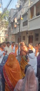 अंतर्मुखी मुनिश्री पूज्यसागर जी महाराज का पदयात्रा के दौरान छावनी में कैलाश वेद परिवार ने पाद प्रक्षालन किया। छावनी चौराहे सहित कई स्थानों पर भक्तों ने पाद प्रक्षालन किया। उल्लेखनीय है कि श्रीजी की पालकी की शोभायात्रा महिलाएं कलश लेकर चल रही थी। पूज्यसागर जी के सानिध्य में ध्वजारोहण किया गया।