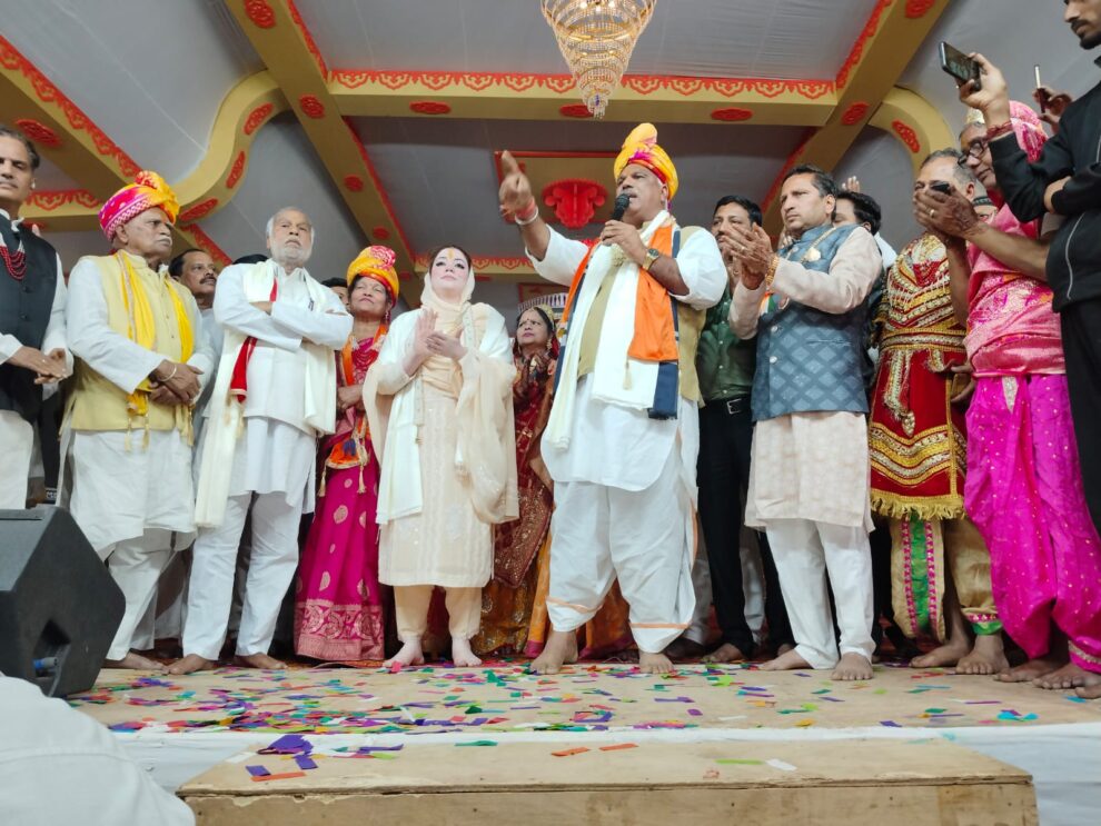 कामां। यूं तो सभी जन्म लेते हैं लेकिन कुछ ही लोगों का जन्म सार्थक होता है यदि जन्म लेना है तो मां विजय मती की तरह लो जिन्होंने संपूर्ण भारत वर्ष में जैनत्व का मान बढ़ाया और अपने संयम की साधना में अग्रणी रहीं। उक्त उद्गार जैनाचार्य सुनील सागर महाराज ने पंचकल्याणक प्रतिष्ठा में भगवान के जन्म कल्याणक महोत्सव में व्यक्त किये। पंचकल्याणक प्रतिष्ठा महोत्सव समिति के महामंत्री संजय जैन बड़जात्या ने बताया कि पंचकल्याणक प्रतिष्ठा महोत्सव की तीसरे दिन बालक शांति कुमार का जन्म कल्याणक उत्सव मनाया गया तो हजारों की संख्या में जैन श्रावकों के साथ अन्य श्रावक भी उमड पड़े, वहीं जब विशाल शोभा यात्रा कस्बे में निकाली गई तो गजराज पर इन्द्रों को विराजमान देख संपूर्ण कामां नगर हर्षित नजर आया और स्वागत को खड़ा हो गया। इस अवसर पर खंडेलवाल समाज, अग्रवाल समाज, पंजाबी समाज,कमल अरोड़ा के नेतृत्व में व्यापार महासंघ, किराना व्यापार महासंघ, रेडीमेड यूनियन, ब्राह्मण समाज, यादव समाज, गिरधारी खण्डेलवाल, लालचन्द सिंघल, राजू शर्मा, दीपक जांगिड़ सहित अनेक लोगों ने स्वागत सत्कार किया। जन्म कल्याणक पर पशुपालन में गृह राज्य मंत्री जवाहर बेढम ने कहा कि यह कृषि के साथ-साथ ऋषि प्रधान देश भी है। स्थानीय विधायक नोक्षम चौधरी ने कहा कि जैन समाज स्वावलंबी स्वाभिमानी वह साधन संपन्न समाज है। जिन्होंने इतने बड़े आयोजन का बीड़ा उठाया है मैं उन्हें धन्यवाद देना चाहती हूं। यह सब उनकी एकता और बुद्धिमत्ता का प्रमाण है। पूर्व मंत्री मदन मोहन सिंघल, रविंद्र जैन सहित अन्य नेताओं का प्रतिष्ठा महोत्सव के पदाधिकारियों ने अभिनंदन किया।