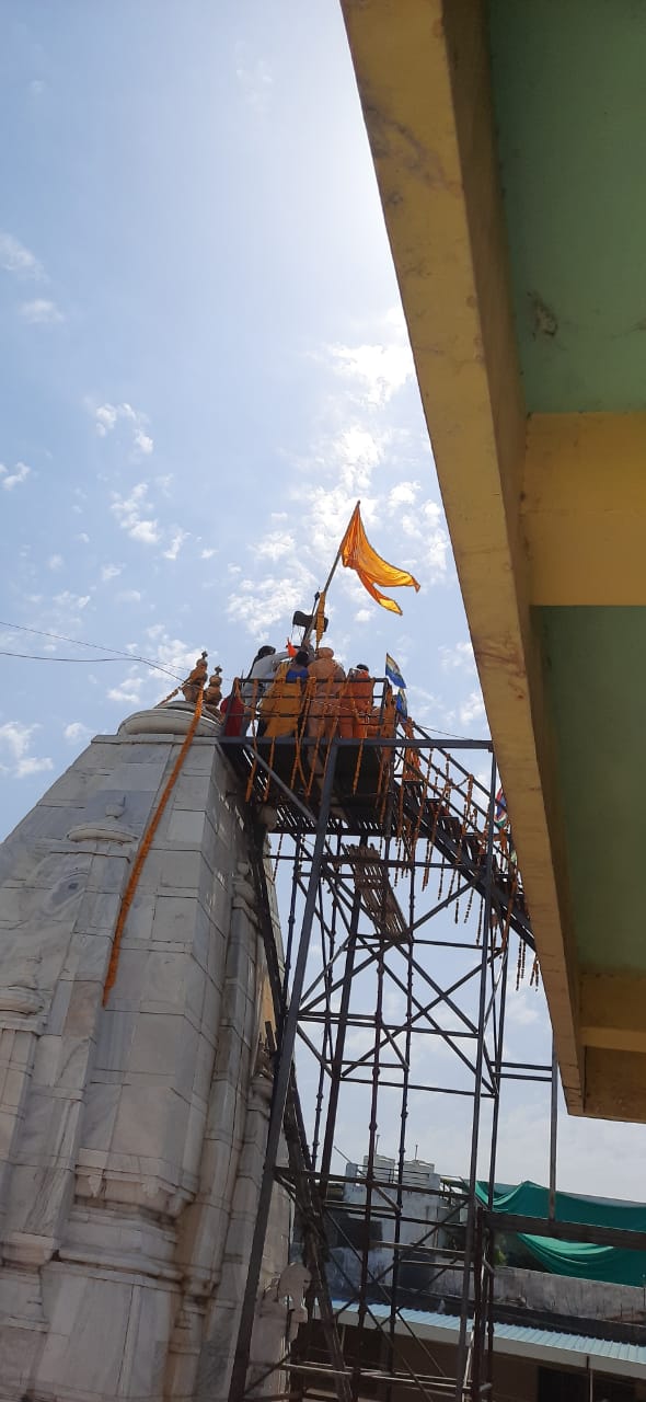 सीढ़ी का लोकार्पण समाजसेवी चिरोंजीलाल पहाड़िया परिवार की ओर से मैना अशोक पहाड़िया परिवार ने किया। जैसे ही उन्होंने ध्वजारोहण किया, पूरा मंदिर परिसर जयकार की ध्वनि से गूंज उठा। समस्त मांगलिक क्रियाएं पंडित नितिन झांझरी ने संपन्न कराई।