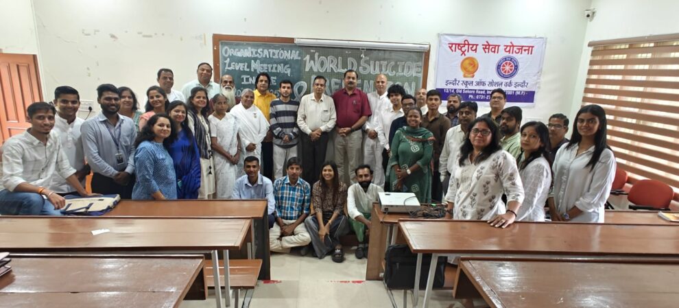इंदौर। विश्व आत्महत्या रोकथाम दिवस के अवसर पर इंदौर स्कूल ऑफ सोशल वर्क ने समाज कार्य विभाग के तत्वावधान में एक विशेष कार्यक्रम का आयोजन किया। इस कार्यक्रम का मुख्य उद्देश्य इंदौर को भारत का पहला मानसिक स्वास्थ्य के प्रति जागरूक शहर बनाने की दिशा में कदम बढ़ाना था।