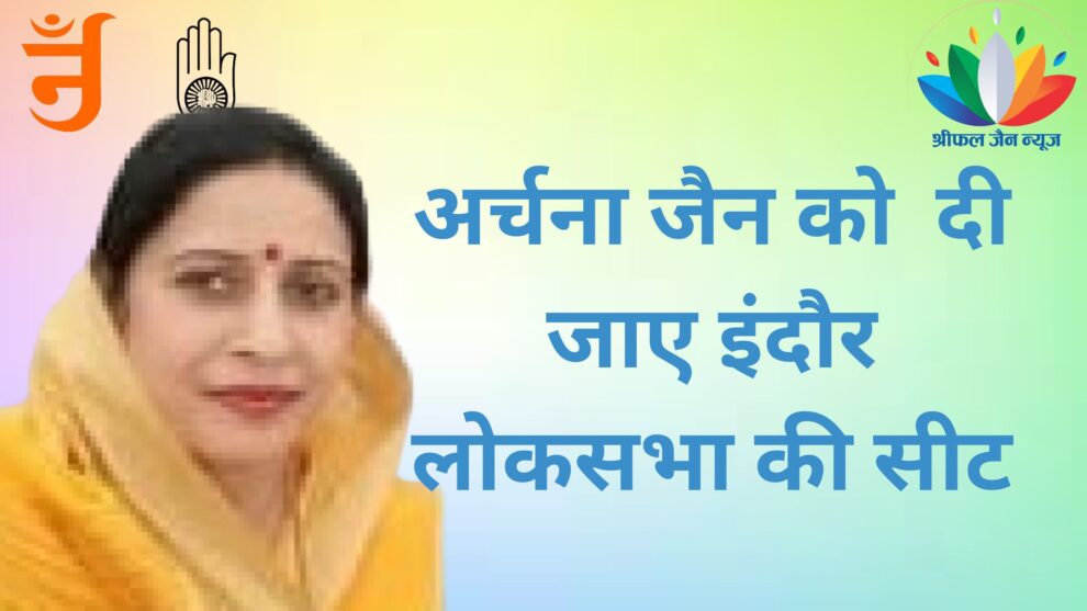 इंदौर से नीति आयोग की सदस्य अर्चना जैन को लोकसभा की टिकिट दी जाए जैन राजनैतिक चेतना मंच के मीडिया प्रभारी राजेश जैन दद्दू एवं अध्यक्ष सुभाष काला एवं सकल जैन समाज की मांग है