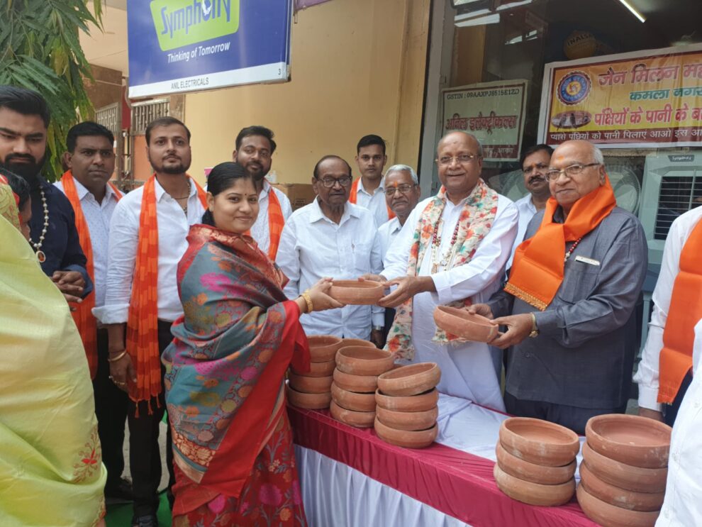 आगरा। युवा जैन मिलन, जैन महिला महावीर उत्तरी, महिला जैन मिलन कमला नगर, आगरा द्वारा हर वर्ष की तरह गर्मी से राहत प्रदान करने के लिए कमला नगर स्थित चांदनी चौक बजाज वर्ल्ड के पास राहगीरों के लिए शीतल जल की प्याऊ मिनरल वाटर का शुभारंभ किया गया। इसके साथ पक्षियों के पानी पिलाने के बर्तन का भी वितरण किया गया। समारोह के मुख्य अतिथि प्रदीप जैन पीएनसी, आगरा दिगंबर जैन परिषद के अध्यक्ष जगदीश प्रसाद जैन ने सुंयक्त रूप से फीता काटकर और राहगीरों को पानी पिलाकर प्याऊ का शुुभारंभ किया।
