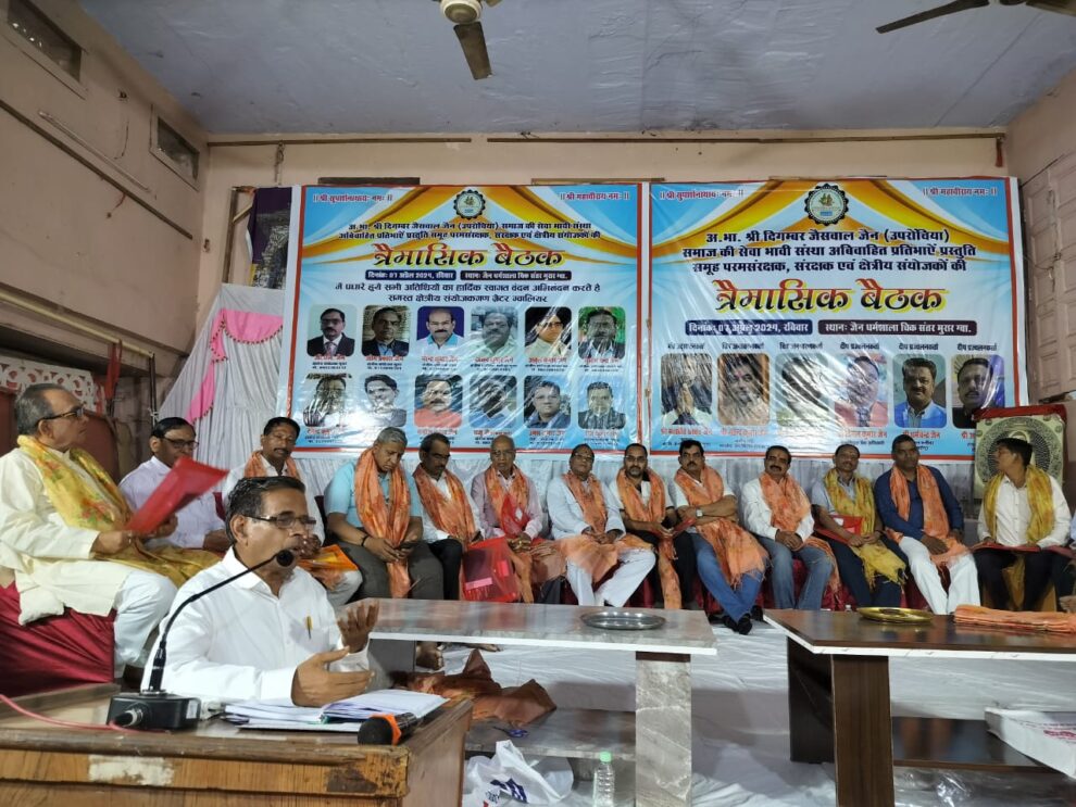 ग्वालियर ।अखिल भारतवर्षीय अविवाहित प्रतिभाएं प्रस्तुति समूह की त्रैमासिक बैठक 07 अप्रैल को उप नगर मुरार में संपन्न हुई । अविवाहित प्रतिभाएं प्रस्तुति समूह के राष्ट्रीय मीडिया संयोजक मनोज जैन नायक मुरैना द्वारा प्रदत्त जानकारी के अनुसार अखिल भारतीय दिगम्बर जैसवाल जैन उपरोचियां समाज की सेवाभावी संस्था अविवाहित प्र. प्र. समूह की त्रैमासिक बैठक रविवार 07 अप्रैल को जैन धर्मशाला चिक संतर मुरार (ग्वालियर) में भारतवर्ष से पधारे हुए सैकड़ों प्रतिनिधियों की उपस्थिति में संपन्न हुई । जिसमें सर्वसम्मति से राष्ट्रीय अधिवेशन एवम परिचय सम्मेलन कराने का निर्णय लिया गया । मंगलाचरण के साथ प्रारंभ हुई बैठक में स्थानीय समाज के श्रेष्ठिवर्ग से कांफ्रेंस हॉल एवम मंच का उद्घाटन श्री महावीर प्रसाद जैन अध्यक्ष (जैसवाल समाज मुरार), श्री जिनेंद्र प्रभु के चित्र का अनावरण श्री महेंद्र कुमार जी जैन (क्षेत्रीय मंत्री जैन मिलन) एवं श्री अशोक कुमार जी जैन (सेवानिवृत सहकारिता निरीक्षक) तथा दीप प्रज्वलित श्री विमल जी जैन (सेवानिवृत मेनेजर), श्री धर्मचंद जैन रॉयल फर्नीचर, श्री अनुराग जैन स्टेशन वाले ने किया । समूह के राष्ट्रीय संयोजक अजय जैन शिवपुरी ने समूह की वार्षिक प्रगति रिपोर्ट पढ़ते हुए वर्ष 2023 के आय व्यय पत्रक के साथ सोनागिर परिचय सम्मेलन का हिसाब प्रस्तुत किया । जिसे सभी ने ध्वनिमत से स्वीकृति प्रदान की ।
