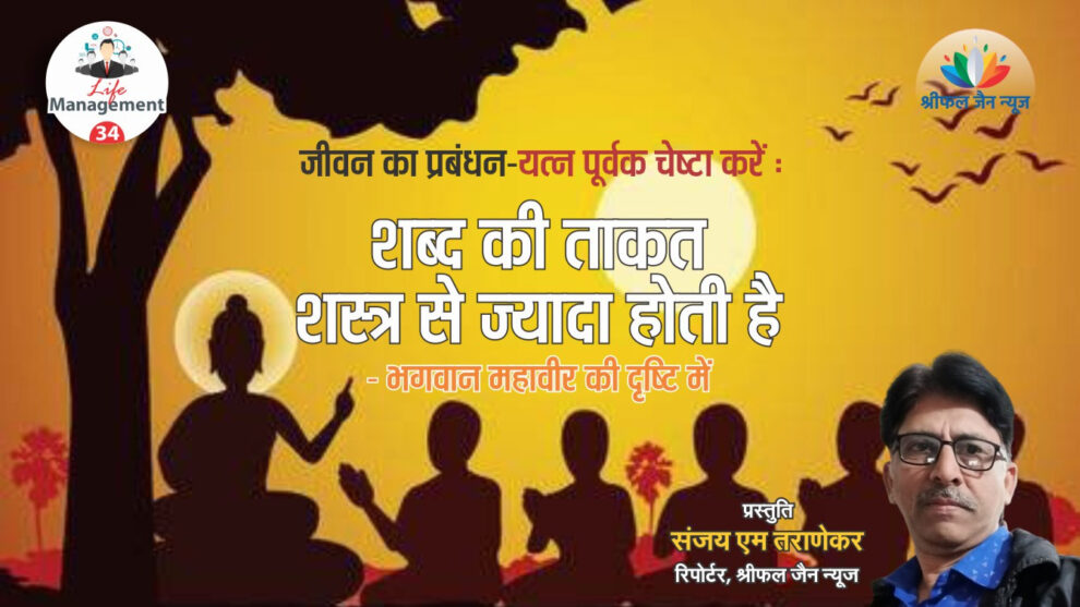 शब्द के बगैर मानव गूंगा ही है साथ ही बेकार और आधारहीन है। मुनि विनय कुमार आलोक कहते है-‘शब्दों की ताकत, तलवार और गोली की ताकत से भी अधिक होती है। शब्दों के प्रभाव की सीमा को परिभाषित करना मुश्किल है। वेद में तो शब्द को ब्रह्म कहा गया है। शब्दों का यदि समझदारी के साथ उचित उपयोग किया जाए, तो आधी सफलता पहले से ही तय हो जाती है। इसके उलट शब्दों के गलत इस्तेमाल से महाभारत जैसी स्थितियां निर्मित हो जाती हैं।‘ मुनिश्री प्रणम्य सागरजी महाराज की पुस्तक खोजो मत पाओ व अन्य ग्रंथों के माध्यम से श्रीफल जैन न्यूज Life Management निरंतरता लिए हुए है। पढ़िए इसके 34वें भाग में श्रीफल जैन न्यूज के रिपोर्टर संजय एम तराणेकर की विशेष रिपोर्ट….