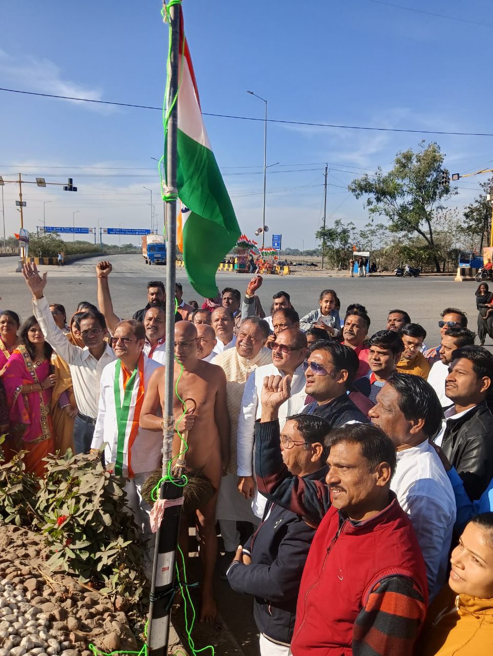 पूरे देश में बड़े ही हर्ष और उल्लास के साथ गणतंत्र दिवस मनाया जा रहा है। इस मौके पर परम पूज्य पूज्य सागर जी महाराज के सानिध्य में दादा रतन पाटोदी चौराहे सुपर कारिडोर पर झण्डा वंदन किया गया। झण्डा वंदन से पहले पूज्य सागर महाराज ने अपने प्रवचन में कहा की संविधान सम्मत अपने धर्म की रक्षा करना सबका दायित्व है।