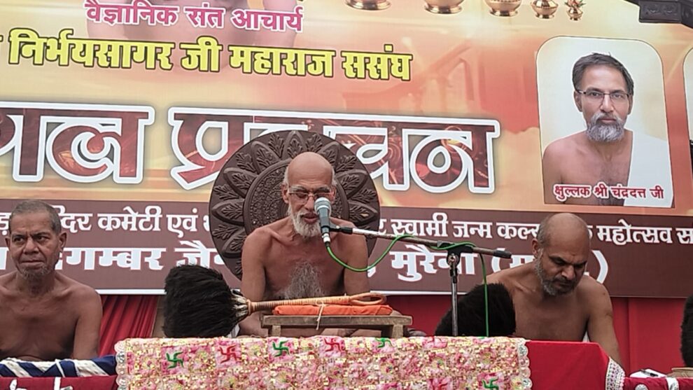 भावना भाव नासनी होती है। विचार विचार को पैदा करते हैं, मधुर वाणी मधुर वाणी को पैदा करती है,आचरण आचरण को पैदा करता है,पैसा पैसे को पैदा करता है। इसलिए हमेशा मधुर वाणी बोलना चाहिए। यह उद्गार आचार्यश्री निर्भयसागर जी महाराज ने बड़ा जैन मंदिर मुरैना में धर्मसभा को संबोधित करते हुए व्यक्त किए। मुरैना से पढ़िए, मनोज जैन नायक की यह खबर…