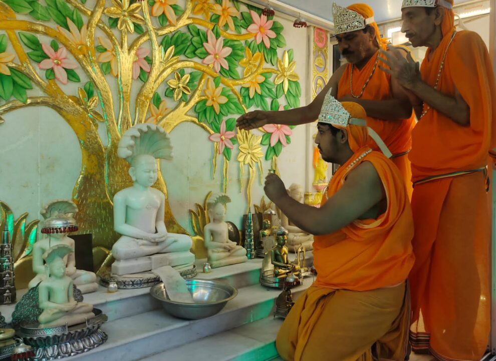 जहां त्याग ही त्याग है यहां देने की संस्कृति है। जैन दर्शन में धनपति का सम्मान नहीं उसके त्याग का सम्मान होता है। दान करने वाले सम्माननीय होते हैं परंतु त्याग करने वाले पूजनीय होते हैं। दान करने से कभी भी घटता नहीं है। प्रातः नया मंदिर में दीदी के मुखारविंद से विश्व शांति धारा का पाठ किया गया। नया मंदिर में मूलनायक 1008 महावीर भगवान का प्रतिमा का प्रथम अभिषेक व शांति धारा का सौभाग्य संदीप, संजय, आशीष, तुषार सेठी परिवार को मिला। बड़ा मंदिर में मूलनायक पारसनाथ भगवान का प्रथम अभिषेक व शांति धारा का सौभाग्य संजय-रितेश, प्रतीक गंगवाल , भगवान का श्री विहार एवं प्रथम अभिषेक रजत धारी से शांति धारा का सौभाग्य शांति लाल, विजय छाबड़ा के परिवार को और दूसरी तरफ से स्वर्ण झारी से सुमति देवी, अशोक, अनिल पाटोदी परिवार को मिला। 1008 आदिनाथ भगवान की वेदी में अभिषेक और शांति धारा का सौभाग्य सुरेश, नरेंद्र झांझरी परिवार को मिला।