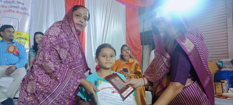 भिंड। जैन मिलन महावीर और जैन मिलन महिला चंदना के संयुक्त तत्वावधान में लगाए गए 15 दिवसीय श्री विराग विशुद्ध बाल संस्कार शिक्षण शिविर एवं जैन प्रतिभा सम्मान समारोह 2025 का समापन महावीर गंज में हुआ। शाम 7 बजे से 10.30 तक चले इस कार्यक्रम में वीरांगना अंजू जैन ने मंच का उद्घाटन किया। मनोज जैन (जमसारा) ने चित्र अनावरण एवं दीप प्रज्वलन वीरांगना उर्मिला सुनील जैन ने किया। मंच पर आसीन अतिथियों में भारतीय जैन मिलन के प्रचार अध्यक्ष अतिवीर राजेश जैन बंटी मुख्य अतिथि, अति विशिष्ट अतिथि क्षेत्रीय अध्यक्ष अतिवीर महेंद्र जैन, विशिष्ट अतिथि क्षेत्रीय उपाध्यक्ष अतिवीर सुनील जैन, क्षेत्रीय मंत्री वीर कमलेश जैन, क्षेत्रीय संयोजिका वीरांगना राखी जैन मंचासीन रहीं।