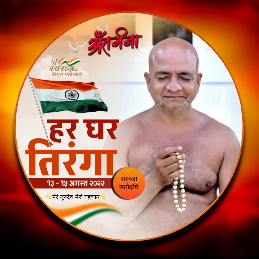 - इसी आत्मीय भाव के साथ, -हर घर तिरंगा फहराएं और प्रेम के असंख्य दीप जलाइए, जिनका प्रकाश सम्पूर्ण मानवता को आलोकित करे और लहराता तिरंगा नए भारत के सौभाग्य एवं पुरुषार्थ की पताका को दिग-दिगंत में लहरा दे, फहरा दे – यही है साधक अंतर्म