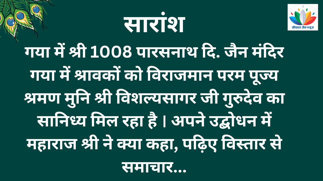 गया के श्रावकों को श्रमण मुनि विशल्यसागर जी का सानिध्य: श्री 1008 पारसनाथ दिगंबर जैन मंदिर में आयोजन