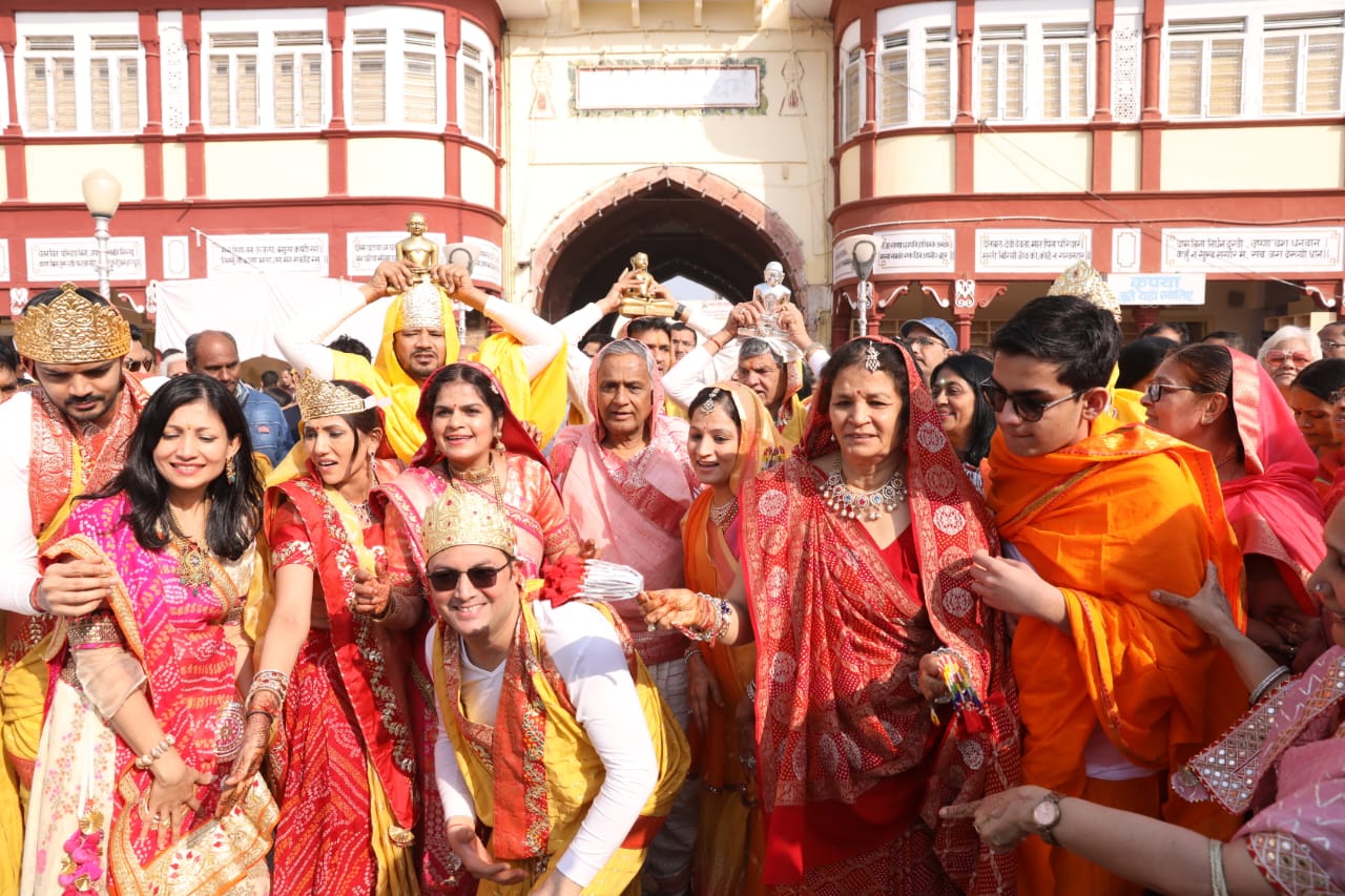 इससे पूर्व बिन्याक्या परिवार भगवान महावीर स्वामी की भूगर्भ से प्रकटित मूंगावर्णी मूलनायक प्रतिमा का महामस्तकाभिषेक करने हेतु नाचते गाते शुद्ध पीत वस्त्र धारण कर बैण्ड बाजों के साथ विशाल जुलूस के रूप में मुख्य मंदिर पहुंचे।