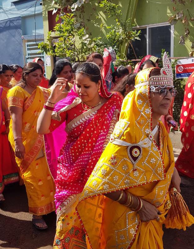सोधर्म इन्द्र इंद्राणी श्री गौतम जी गजराज पर भगवान को लेकर शोभायात्रा की शोभा बढ़ा रहे थे।