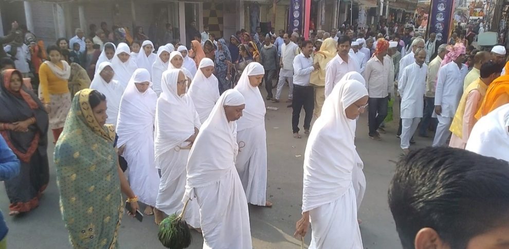 घुवारा, राजेश जैन रागी. 4 दिसंबर । आर्यिका श्री विज्ञानमति माताजी ससंघ के मंगल सानिध्य में यहां आयोजित अष्ट दिवसीय श्री सिद्धचक्र महामण्डल विधान का समापन रविवार को हुआ। समापन अवसर पर विश्व शांति महायज्ञ एवं श्रीजी की विशाल भव्य शोभायात्रा तथा रथोत्सव का आयोजन किया गया। कार्यक्रम में बुन्देलखण्ड के ग्रामीण एवं नगरीय अंचलों के जन समुदाय ने भाग लिया।