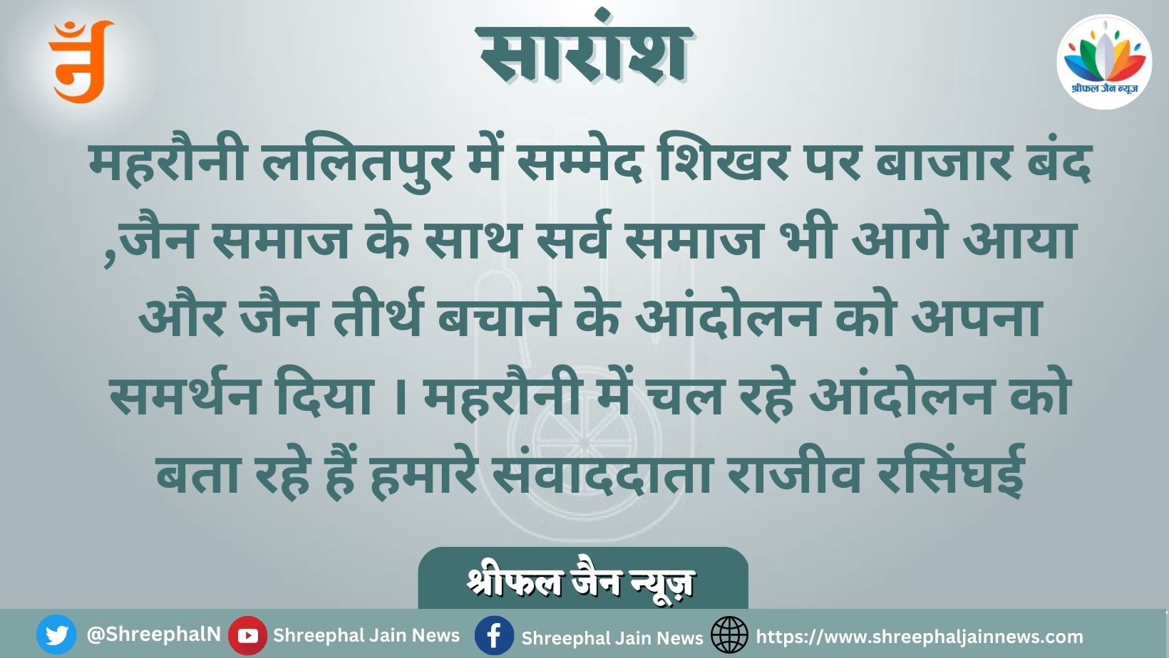 सम्मेद शिखर जी तीर्थ क्षेत्र दुनिया भर में फैले जैन धर्मावलंबियों के लिए बहुत ही भावनात्मक संबंध रखता है । सरकारों के निर्णय को लेकर सर्व समाज ने बाजार बंद कर रैली निकली |