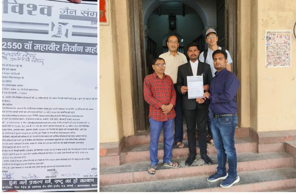 इंदौर। हाल ही में प्रकाश में आयी घटना जिसमें जैन तीर्थंकर प्रतिमाओ को नीलाम किया जाना प्रस्तावित है। जिसका पूरे देश में विरोध हो रहा है। विश्व जैन संगठन दिल्ली से प्राप्त सूचना के अनुसार मुंबई में टोड़ीवाला ऑक्शंस वेबसाइट द्वारा 15 प्राचीन जैन प्रतिमाओं की नीलामी के लिए लोगो से लाखों रुपए की बिड लगवाई जा रही है। इन प्रतिमाओं को मंगलवार, 16 अप्रैल 2024 को मुंबई के ताजमहल पैलेस में क्लासिकल इंडियन आर्ट 3 के अंतर्गत नीलामी किए जाना प्रस्तावित है।