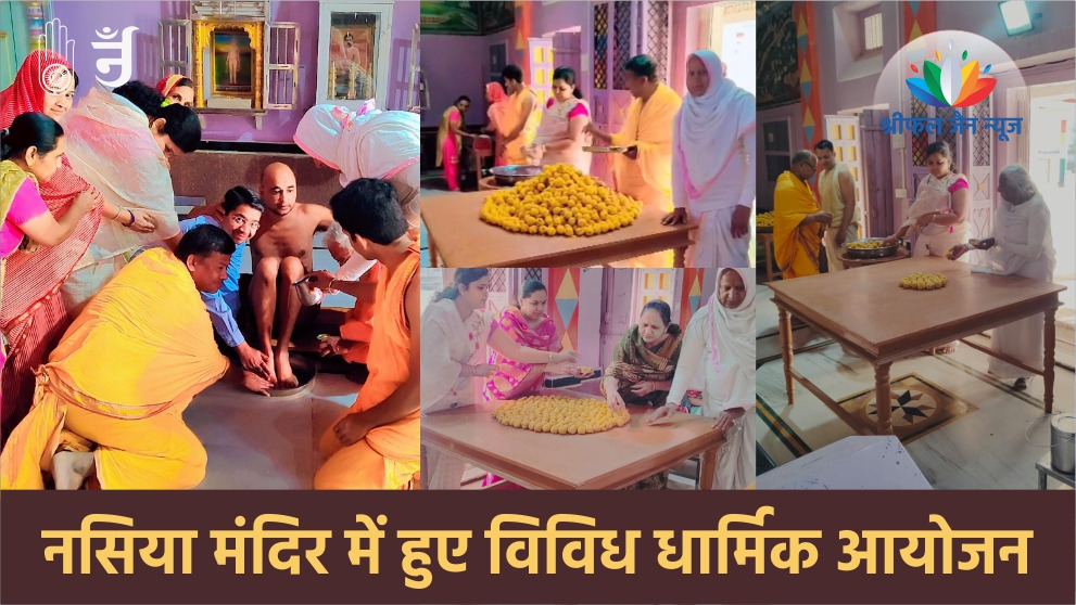 नसिया मंदिर में मुलनायक आदिनाथ भगवान का पंचामृत अभिषेक हुआ । उसके बाद भगवान के 1000 नाम वाले सहस्रनाम के मंत्रो के साथ 1000 लड्डू चढ़ाए गए । उसके बाद मुनि श्री पूज्य सागर महाराज का पाद पक्षालन क्षुल्लक श्रीं और समाज के लोगो ने किया । क्षुल्लक अनुश्रमण सागर महाराज का पाद पक्षालन, महावीर वखावत ने किया । इसी तरह सहस्रनाम मंत्रो का जाप महावीर डागरिया, राजेश सेठ, आदेश पटवा,अभिलाषा गोवाडियापंकज रमावत,गौरव दोषी,राजकुमार दोषी,रानू संदेश जोदावत ,महावीर वखावत में किया ।