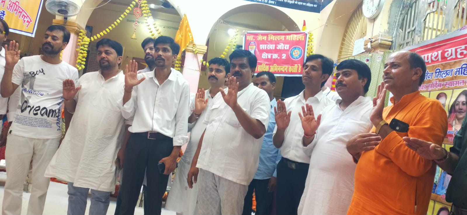 मुरेना/जौरा। जैन मिलन शाखा जौरा का शपथ ग्रहण समारोह हर्षोल्लास पूर्वक मनाया गया। समारोह के मध्य मेधावी बच्चों को सम्मानित भी किया गया।समारोह के शुभारंभ में वीरांगना रजनी जैन ने अपनी टीम के साथ भगवान महावीर वंदना की। इसके बाद पाठशाला के बच्चों द्वारा मंगलाचरण किया गया। पधारे हुए अथितियों द्वारा चित्र अनावरण एवं दीप प्रज्वलन किया गया। जैन मिलन के राष्ट्रीय अध्यक्ष राकेश जैन ने सभी नव मनोनीत पदाधिकारियों एवं सदस्यों को निष्ठा और ईमानदारी से कार्य करने की शपथ दिलाई। उन्होंने कहा कि जैन मिलन के सभी धार्मिक-सामाजिक एवं सेवा सांस्कृतिक कार्यक्रमों को कितनी आसानी और सहजता से किया जा सकता है, यह हमारी शाखा के वीर- वीरांगनाओं से सीखना चाहिए। सभी को उनकी मेहनत पर अमल कर आगे बढ़ने की प्रेरणा लेनी चाहिए।