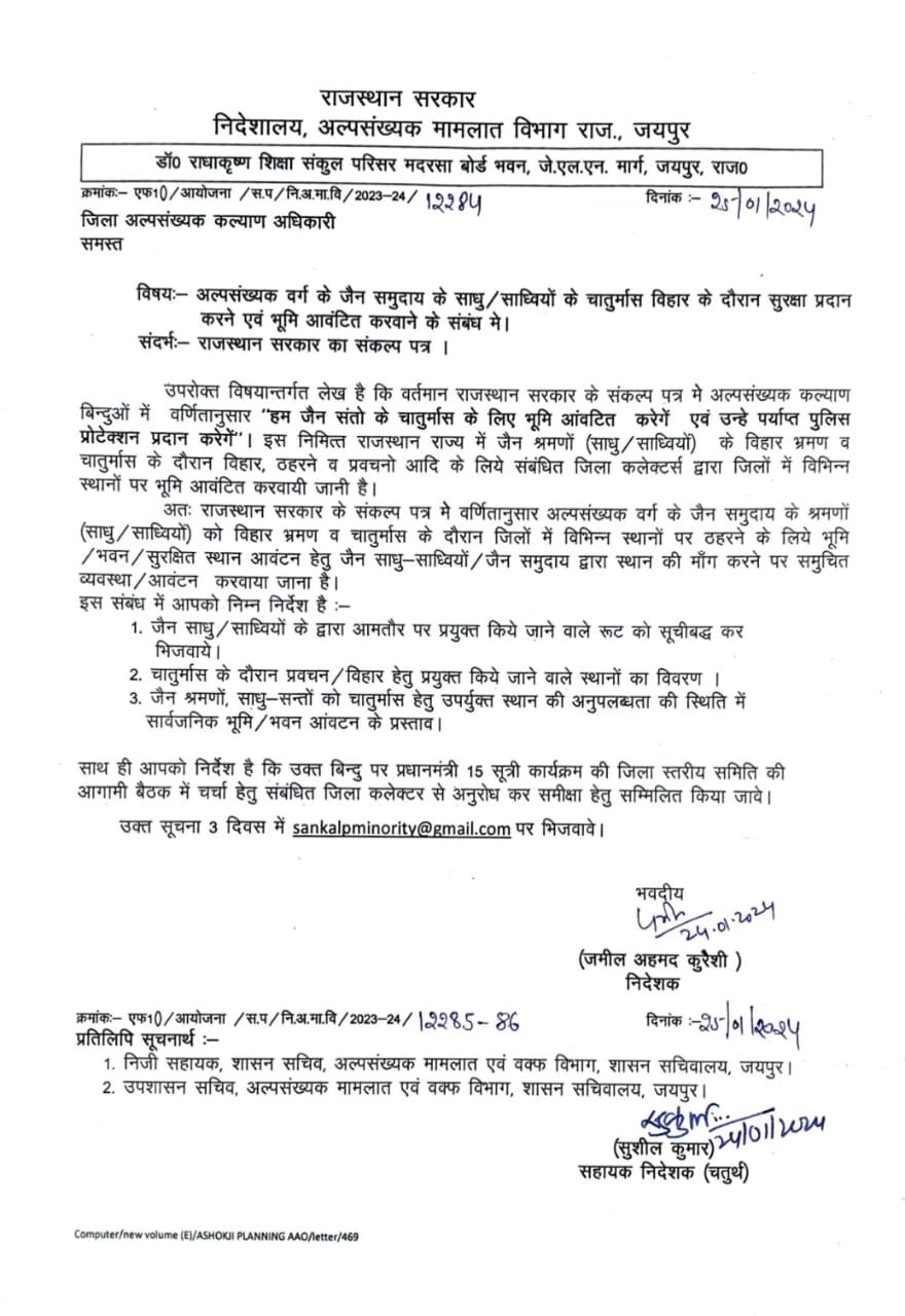 वहीं चातुर्मास के दौरान प्रवचन विहार के लिए प्रयुक्त किए जाने वाले स्थानों का विवरण दे। सरकार ने जैन श्रमणों, साधु-संतों को चातुर्मास के दौरान उपयुक्त स्थान की अनुपलब्धता की स्थिति में सार्वजनिक भूमि भवन आवंटन के प्रस्ताव को भी रखा है।