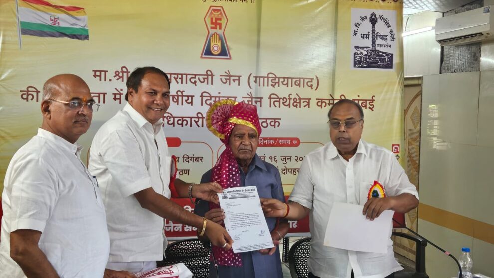 भारतवर्षीय दिगम्बर जैन तीर्थक्षेत्र कमेटी की राष्ट्रीय पदाधिकारी परिषद की मीटिंग पैठन अतिशय क्षेत्र पर आयोजित हुई। इस अवसर पर कमेटी के राष्ट्रीय अध्यक्ष जम्बूकुमार जैन, राष्ट्रीय महामंत्री संतोष पेंडारी व सभी राष्ट्रीय पदाधिकारियों की उपस्थिति में जैनेश झांझरी, इंदौर को तीर्थक्षेत्र सर्वेक्षण समिति का राष्ट्रीय चेयरमैन नियुक्त किया। पढ़िए यह रिपोर्ट…