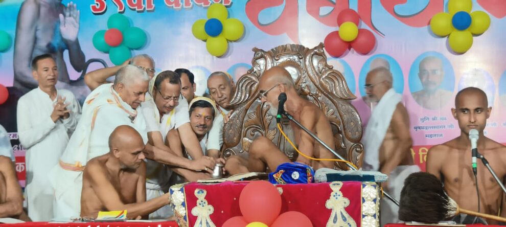 ललितपुर। परिग्रह से अपरिग्रह की ओर बढ़ना, संसार से मुक्ति की ओर बढ़ना और असंयम से संयम की ओर बढ़ना ही जैनेश्वरी दीक्षा है। आचार्य विद्यासागर जी महाराज को युगदृष्टा बताते हुए आचार्य श्री निर्भय सागर महाराज ने कहा कि हमारे गुरु मंत्र और तंत्र से दूर थे। फिर भी सभी कार्य सफल होते थे। गुरु का नाम ही मंत्र और उनका आशीर्वाद ही यंत्र का काम करता है। उन्होंने भारतीय संस्कृति के उत्थान में गौशालाएं, गुरुकुल, अस्पताल और हथकरघा के माध्यम से समाज को जो संदेश दिया। वह सदैव अनुकरणीय रहेगा। यह उद्बोधन जैन अटामंदिर में आचार्य श्री विद्यासागर महाराज के 58 वें मुनिदीक्षा दिवस पर आयोजित कार्यक्रम में आचार्य श्री निर्भय सागर महाराज ने व्यक्त किए। संघस्थ मुनि गुरुदत्त सागर महाराज का दीक्षा दिवस भी मनाया गया। धर्मसभा के शुभारंभ में चन्द्राप्रभु डोंडाघाट महिला मंडल द्वारा मंगलाचरण किया गया। समाज श्रेष्ठियों ने आचार्य श्री विद्यासागर जी के चित्र का अनावरण एवं दीप प्रज्वलित किया एवं जैन पंचायत के पदाधिकारियों ने आचार्य श्री की पूजन के पूर्व पाद प्रक्षालन किया।