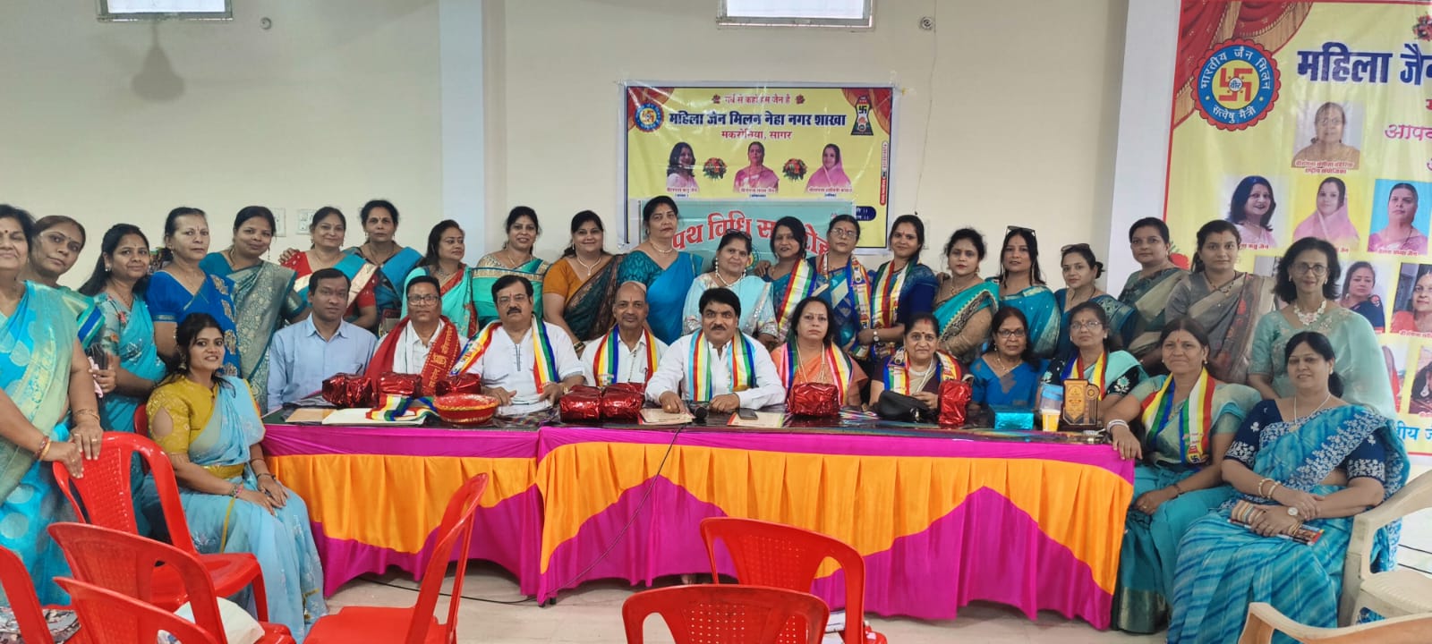 सागर ।भारतीय जैन मिलन क्षेत्र क्रमांक 10 की महिला जैन मिलन नेहानगर शाखा का शपथ ग्रहण समारोह का कार्यक्रम भारतीय जैन मिलन के राष्ट्रीय मंत्री अतिवीर एड. कमलेन्द्र जैन मुख्य अतिथि की उपस्थिती में जैन धर्मशाला में संपन्न हुआ।कार्यक्रम की शुरुआत महावीर प्रार्थना से हुई। तत्पश्चात चित्रावरण एवं दीप प्रज्वलन मंचासीन अतिथियों के द्वारा किया गया । इसके बाद मंचासीन अतिथि अतिवीर एड. कमलेन्द्र जैन राष्ट्रीय मंत्री, वीर अरुण चंदेरिया क्षेत्रीय अध्यक्ष,वीर संजय जैन शक्कर क्षेत्रीय कार्यकारिणी अध्यक्ष ,वीर प्रमोद जैन क्षेत्रीय कोषाध्यक्ष एवं मनोज जैन का स्वागत अंग वस्त्र एवं स्मृति चिन्ह से अध्यक्ष वीरांगना ऋतु जैन एवं सभी वीरांगना ने किया।वीर पीयूष जैन के द्वारा कार्यक्रम का मंगलाचरण किया गया।
