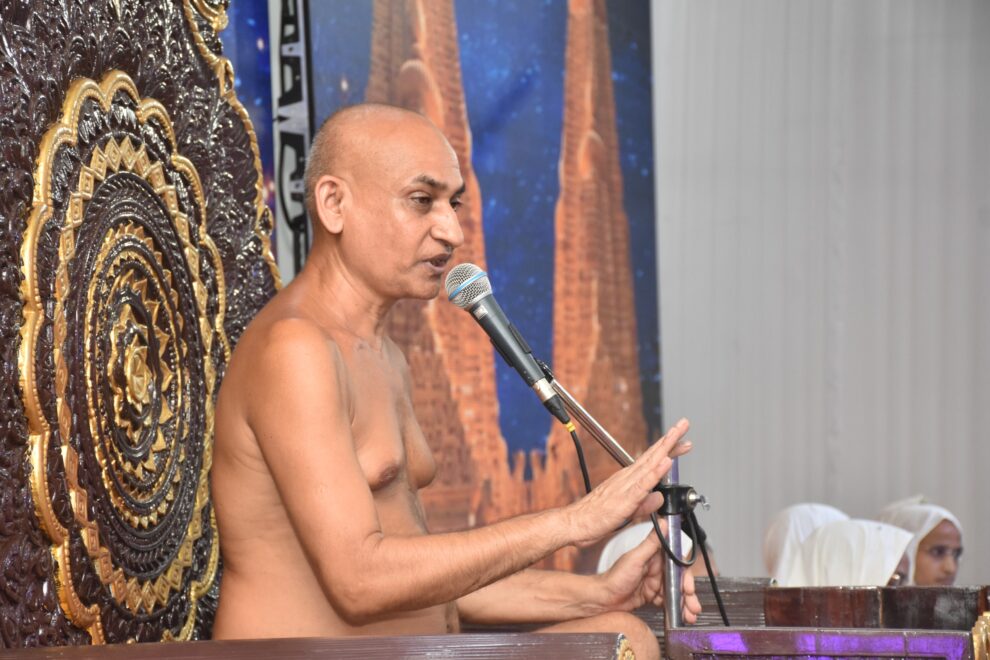 आचार्य श्री ने कहा कि धर्म के बिना जीवन विष का घूंट है धर्म के बिना मनुष्य का मार्ग प्रशस्त नहीं होता धर्म करने वालों को धर्म के स्वरूप का अनुभव करने वालों को दुनिया में कोई मार नहीं सकता क्योंकि धर्म अमर है और उसी धर्म को उन जीवों ने हृदय में धर्म को बसा रखा है और धर्म कभी मरण को प्राप्त नहीं होता जिसके हृदय में धर्म का वास हो उसे दुनिया में कोई भी ताकत मार नहीं सकती धर्मात्मा जीव मृत्यु को भी मार डालते हैं और अपने अमर तत्व को पर्याय में प्रकट कर लेते हैं अमृत्व आत्मा का स्वभाव है जन्म और मरण आत्मा के स्वभाव नहीं पर्याय का परिणमन है।