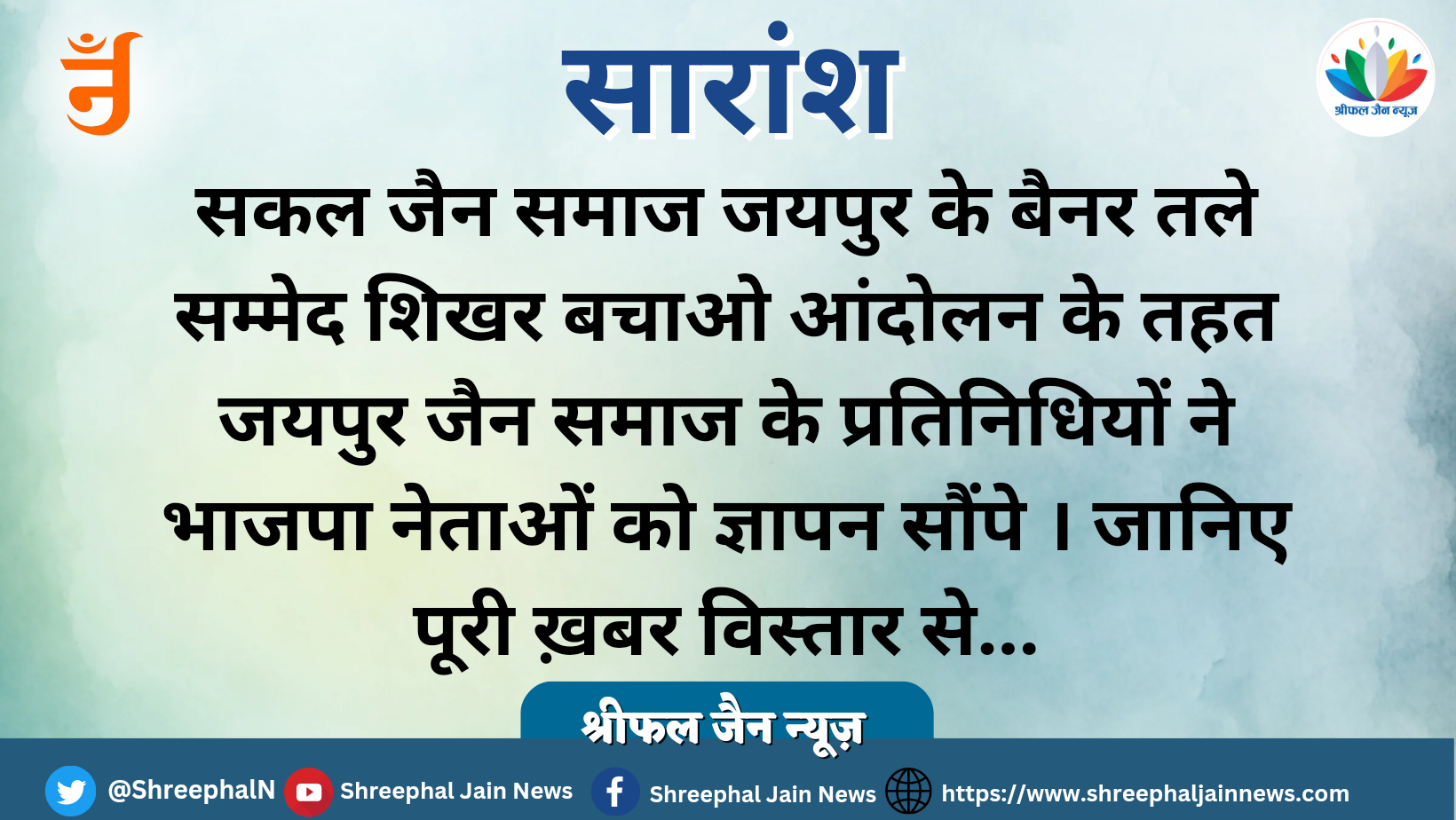 सम्मेद शिखर बचाओ आंदोलन: जयपुर के सकल जैन समाज ने सौंपे ज्ञापन