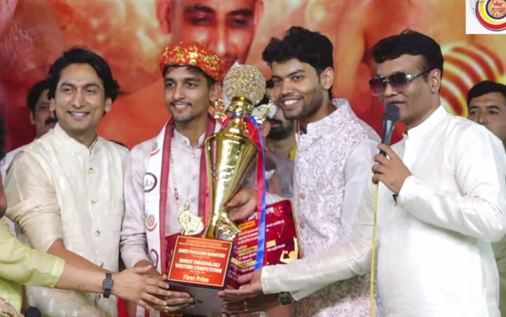 सागर। आचार्य श्री विद्यासागर जी महाराज के शिष्य मुनि श्री दुर्लभसागर जी महाराज के मंगल सानिध्य में सुकृति कला केंद्र सैदपुर खुरई एवं विद्याशरणम परिवार भारत के तत्वावधान में श्रुत स्वरांजलि स्वर लेखन प्रतियोगिता हुई। इसमें देश के अनेक प्रसिद्ध संगीतकारों ने भाग लिया। जिसमें जयपुर के दिव्यांश जैन प्रथम रहा। अंजलि जैन द्वितीय, प्रखर जैन ने तृतीय स्थान प्राप्त किया। दिव्यांश जैन ने 2016 में दैनिक भास्कर अलवर द्वारा आयोजित संगीत प्रतियोगिता में प्रथम स्थान प्राप्त कर विदेश जाने का अवसर प्राप्त किया था। वर्तमान में दिव्यांश जयपुर विश्वविद्यालय से संगीत में पीएचडी कर रहे हैं। दिव्यांश को प्रथम पुरस्कार में सम्मान पत्र के साथ 71 हजार की राशि से सम्मानित किया गया।