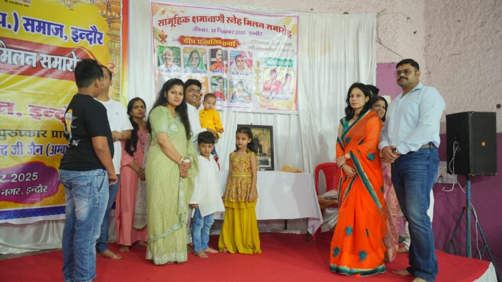 मुरैना/इंदौर। जैसवाल जैन उपरोचियां समाज, इंदौर ने सामूहिक क्षमावाणी स्नेह मिलन समारोह का आयोजन विभिन्न सामाजिक और सांस्कृतिक कार्यक्रमों के साथ किया। मुख्य अतिथि मयंक जी जैन (शिवपुरी) का स्वागत अध्यक्ष ओम प्रकाश और मंत्री प्रदीप जैन द्वारा किया गया। महिलाओं द्वारा तिलक लगाकर सभी समाजजनों का अभिनंदन किया गया। कार्यक्रम की शुरुआत एक स्वास्थ्य कैंप से हुई। वीरेंद्र जैन द्वारा मंत्रोच्चार के साथ समारोह प्रारंभ हुआ। मंच संचालन वीरेंद्र जैन और गौरव जैन ने किया। उद्घाटन मोतीबाई जैन, विनोद जैन और निशांत जैन सपरिवार द्वारा किया गया।