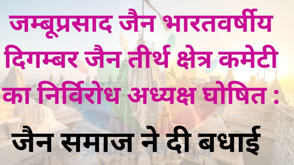 आचार्य श्री सौरभ सागर जी महाराज के अनन्य भक्त एवं सौरभ सागर सेवा संस्थान-जीवन आशा हॉस्पिटल के यशस्वी अध्यक्ष जम्बूप्रसाद जैन, गाजियाबाद को भारतवर्षीय दिगम्बर जैन तीर्थ क्षेत्र कमेटी का निर्विरोध अध्यक्ष घोषित होने पर समाज जनों ने शुभकामनाएं दी हैं। पढ़िए यह रिपोर्ट…